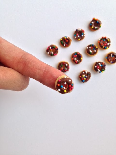 Microwave your chocolate chips until melted. Apply melted chocolate on the donuts with a toothpick. Add sprinkles. Wait for chocolate to set before eating.